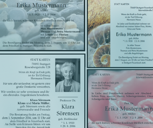 Mit einer Traueranzeige wird der Verlust eines geliebten Menschen öffentlich bekanntgegeben. Hinterbliebenen, Familien und Freunden ermöglicht sie, ihrer Trauer Ausdruck zu verleihen.