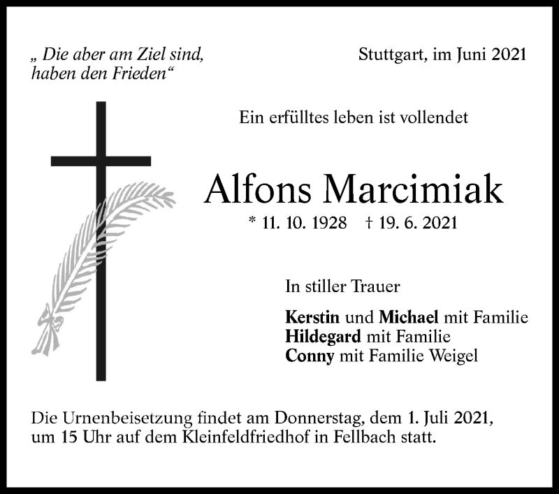 Hier finden Sie alle Traueranzeigen aus der Zeitung, die bisher für Alfons Marcimiak erschienen sind. Weitere Traueranzeigen, die in der Zeitung erscheinen, werden hier ebenfalls aufgelistet