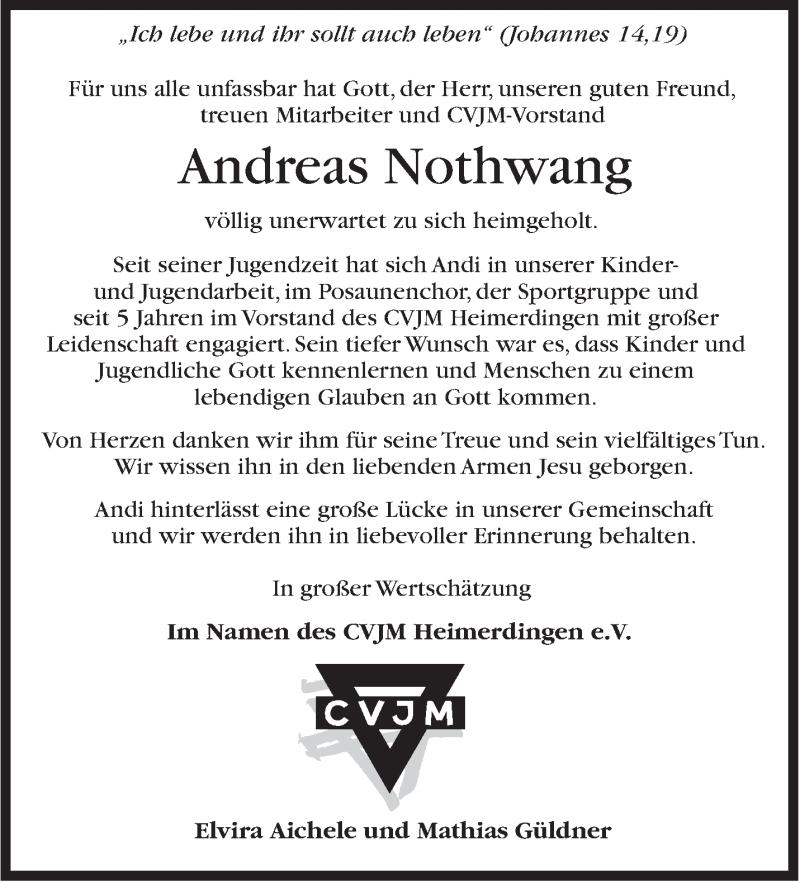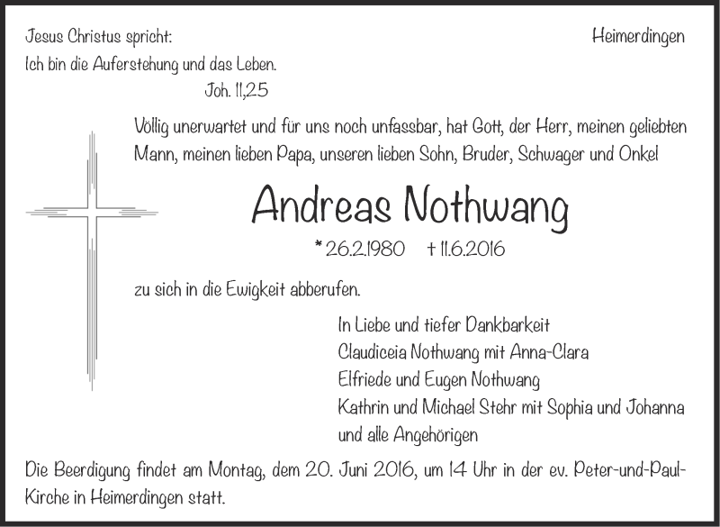 Hier finden Sie alle Traueranzeigen aus der Zeitung, die bisher für Andreas Nothwang erschienen sind. Weitere Traueranzeigen, die in der Zeitung erscheinen, werden hier ebenfalls aufgelistet