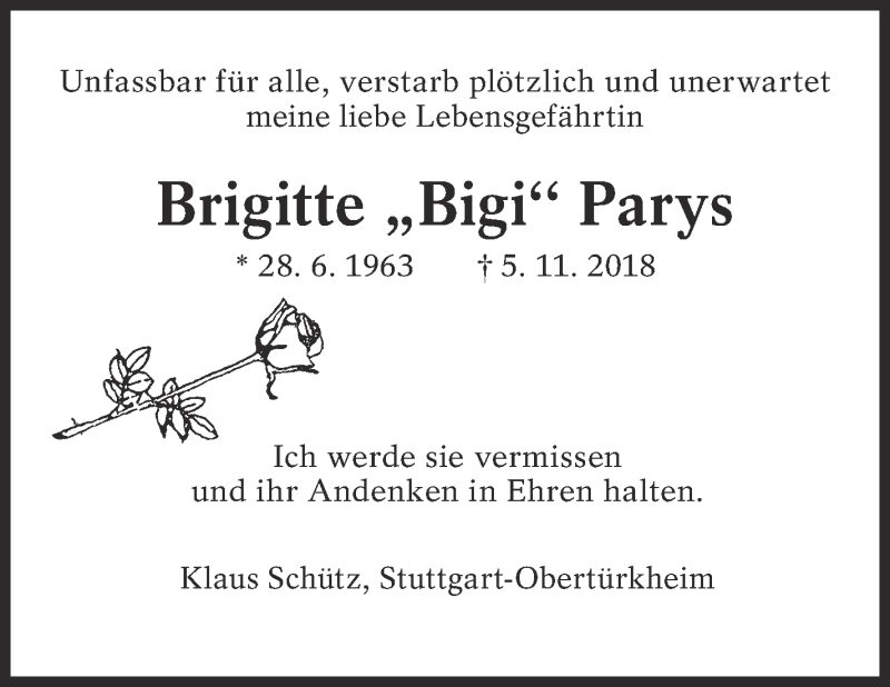 Hier finden Sie alle Traueranzeigen aus der Zeitung, die bisher für Brigitte Parys erschienen sind. Weitere Traueranzeigen, die in der Zeitung erscheinen, werden hier ebenfalls aufgelistet