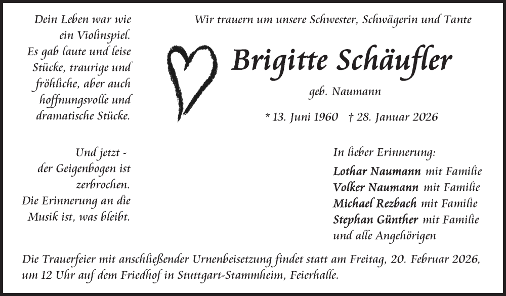 Hier finden Sie alle Traueranzeigen aus der Zeitung, die bisher für Brigitte Schäufler erschienen sind. Weitere Traueranzeigen, die in der Zeitung erscheinen, werden hier ebenfalls aufgelistet