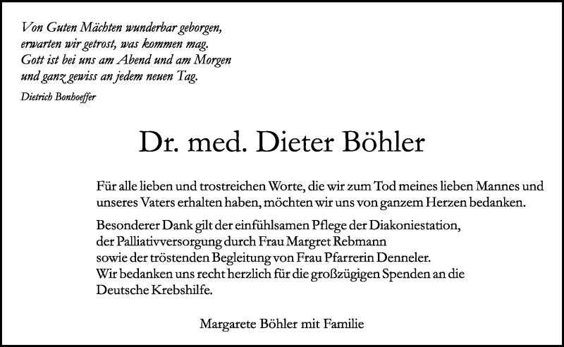 Hier finden Sie alle Traueranzeigen aus der Zeitung, die bisher für Dieter Böhler erschienen sind. Weitere Traueranzeigen, die in der Zeitung erscheinen, werden hier ebenfalls aufgelistet