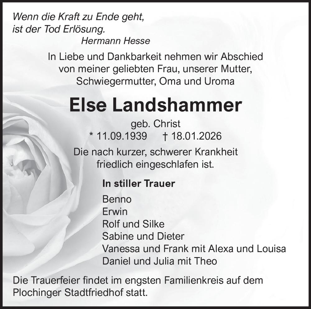 Hier finden Sie alle Traueranzeigen aus der Zeitung, die bisher für Else Landshammer erschienen sind. Weitere Traueranzeigen, die in der Zeitung erscheinen, werden hier ebenfalls aufgelistet
