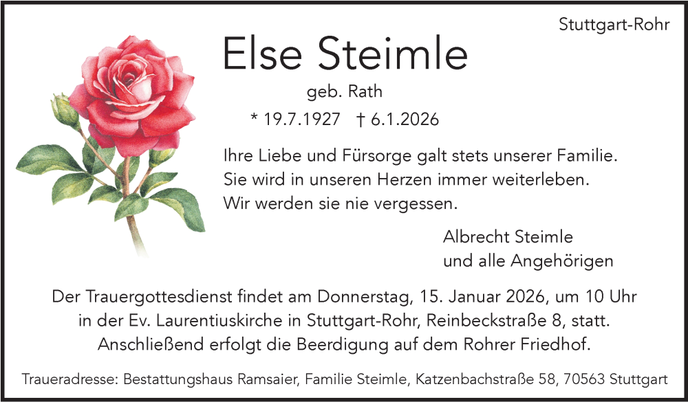Hier finden Sie alle Traueranzeigen aus der Zeitung, die bisher für Else Steimle erschienen sind. Weitere Traueranzeigen, die in der Zeitung erscheinen, werden hier ebenfalls aufgelistet