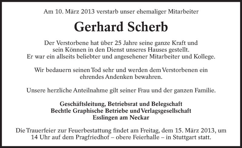Hier finden Sie alle Traueranzeigen aus der Zeitung, die bisher für Gerhard Scherb erschienen sind. Weitere Traueranzeigen, die in der Zeitung erscheinen, werden hier ebenfalls aufgelistet