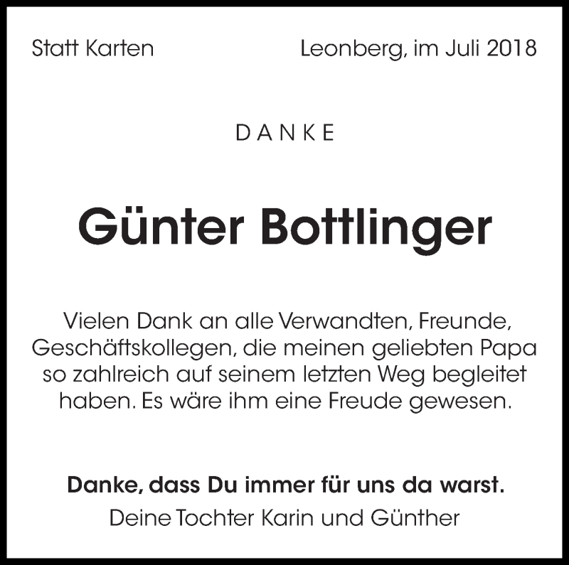 Hier finden Sie alle Traueranzeigen aus der Zeitung, die bisher für Günter Bottlinger erschienen sind. Weitere Traueranzeigen, die in der Zeitung erscheinen, werden hier ebenfalls aufgelistet