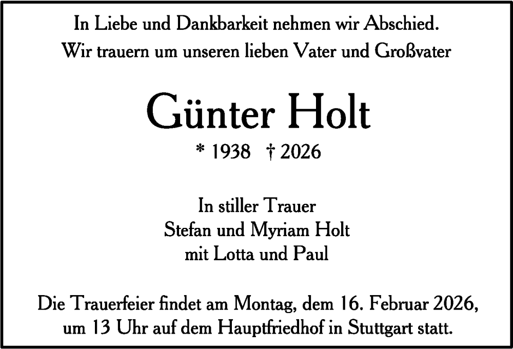 Hier finden Sie alle Traueranzeigen aus der Zeitung, die bisher für Günter Holt erschienen sind. Weitere Traueranzeigen, die in der Zeitung erscheinen, werden hier ebenfalls aufgelistet