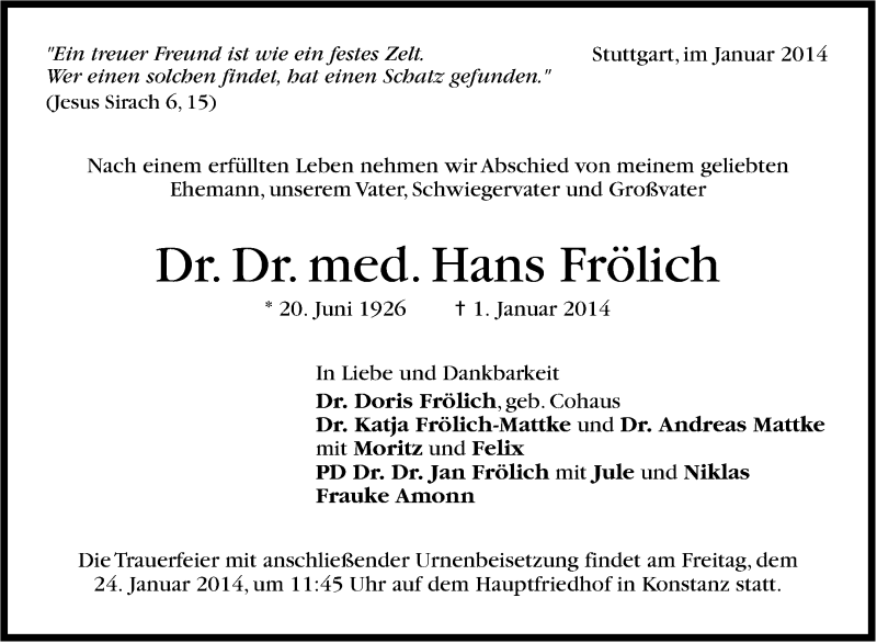 Hier finden Sie alle Traueranzeigen aus der Zeitung, die bisher für Hans Fröhlich erschienen sind. Weitere Traueranzeigen, die in der Zeitung erscheinen, werden hier ebenfalls aufgelistet