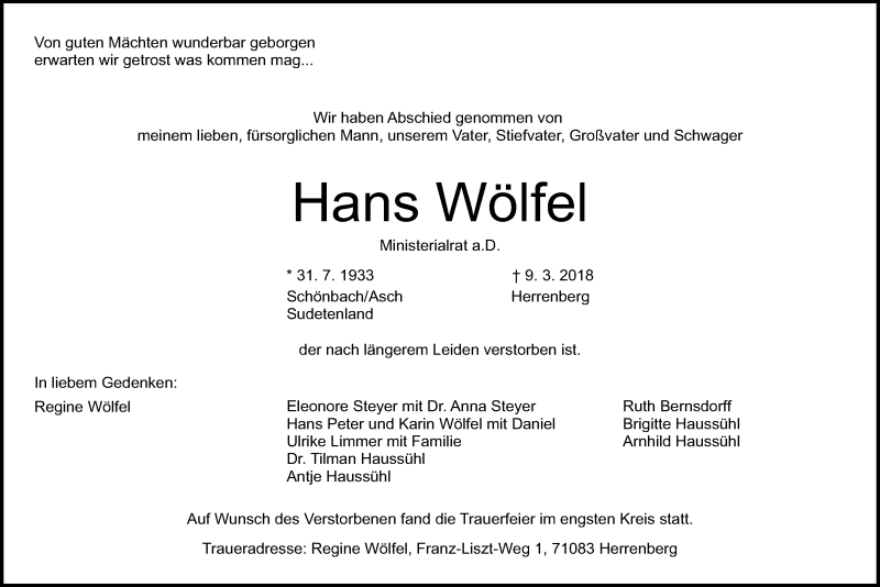 Hier finden Sie alle Traueranzeigen aus der Zeitung, die bisher für Hans Wölfel erschienen sind. Weitere Traueranzeigen, die in der Zeitung erscheinen, werden hier ebenfalls aufgelistet