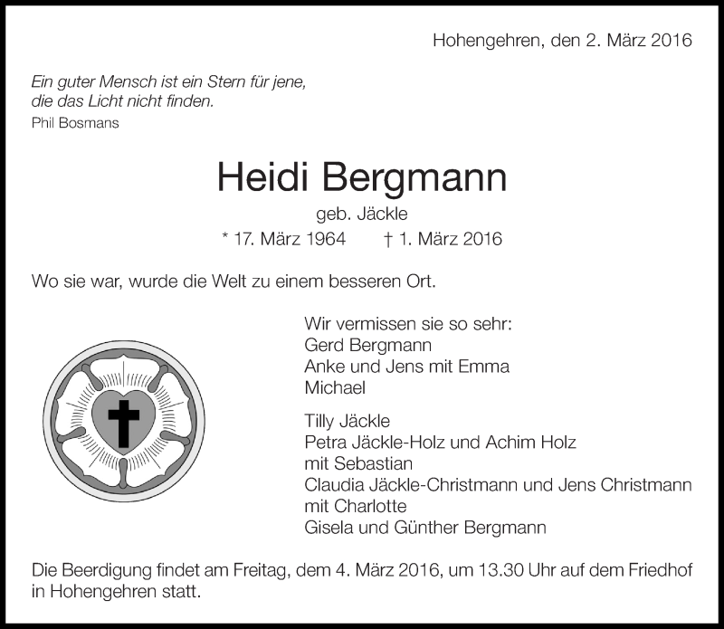 Hier finden Sie alle Traueranzeigen aus der Zeitung, die bisher für Heidi Bergmann erschienen sind. Weitere Traueranzeigen, die in der Zeitung erscheinen, werden hier ebenfalls aufgelistet