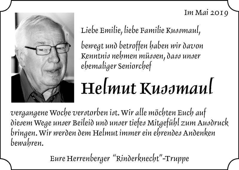 Hier finden Sie alle Traueranzeigen aus der Zeitung, die bisher für Helmut Kussmaul erschienen sind. Weitere Traueranzeigen, die in der Zeitung erscheinen, werden hier ebenfalls aufgelistet