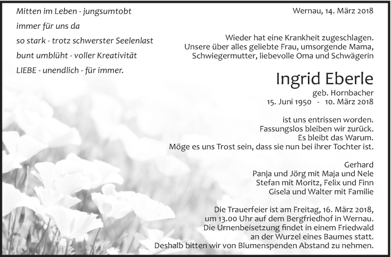 Hier finden Sie alle Traueranzeigen aus der Zeitung, die bisher für Ingrid Eberle erschienen sind. Weitere Traueranzeigen, die in der Zeitung erscheinen, werden hier ebenfalls aufgelistet
