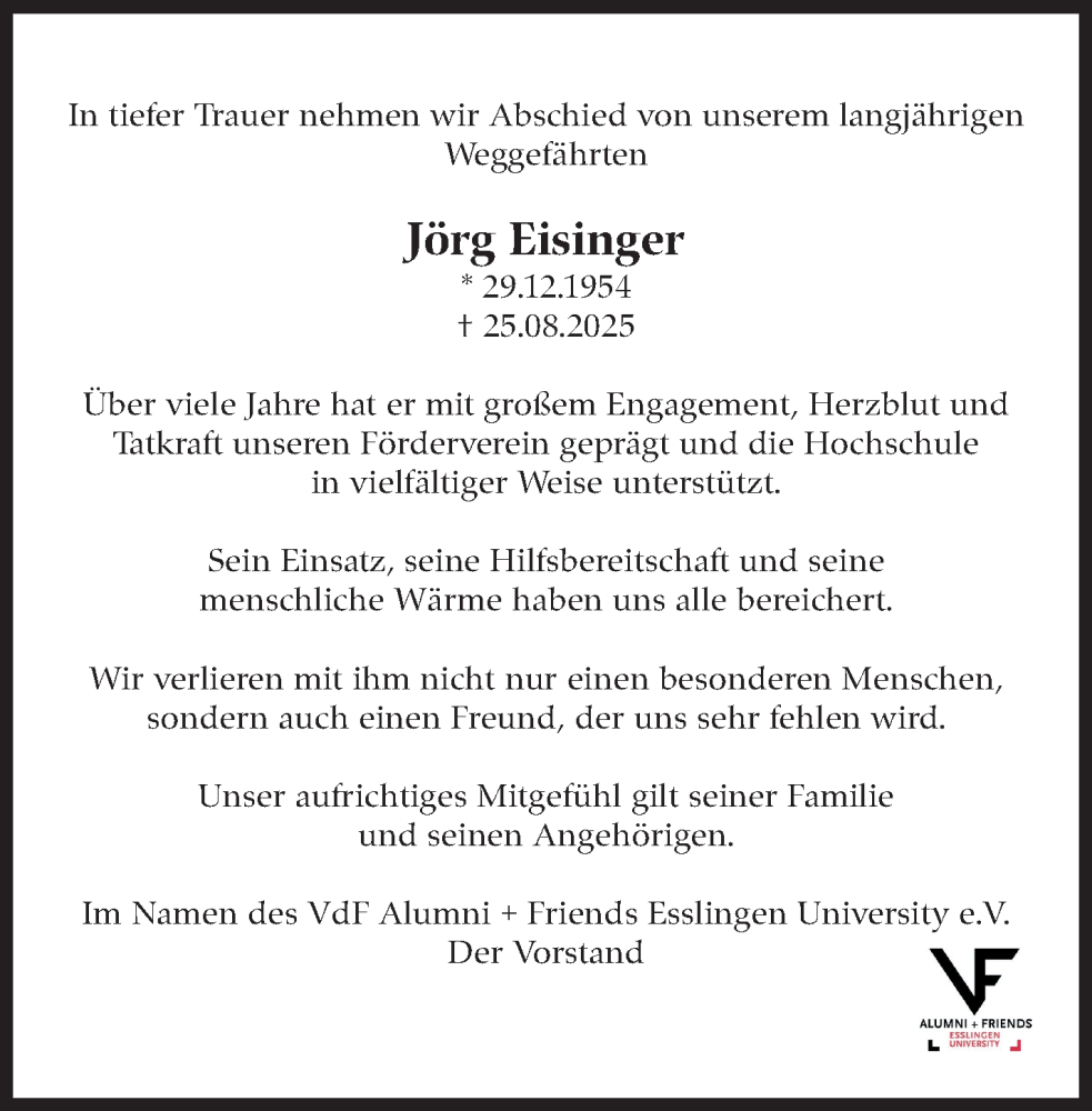 Hier finden Sie alle Traueranzeigen aus der Zeitung, die bisher für Jörg Eisinger erschienen sind. Weitere Traueranzeigen, die in der Zeitung erscheinen, werden hier ebenfalls aufgelistet