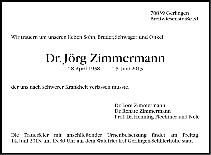Hier finden Sie alle Traueranzeigen aus der Zeitung, die bisher für Jörg Zimmermann erschienen sind. Weitere Traueranzeigen, die in der Zeitung erscheinen, werden hier ebenfalls aufgelistet