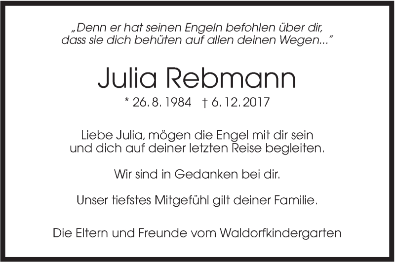 Hier finden Sie alle Traueranzeigen aus der Zeitung, die bisher für Julia Rebmann erschienen sind. Weitere Traueranzeigen, die in der Zeitung erscheinen, werden hier ebenfalls aufgelistet