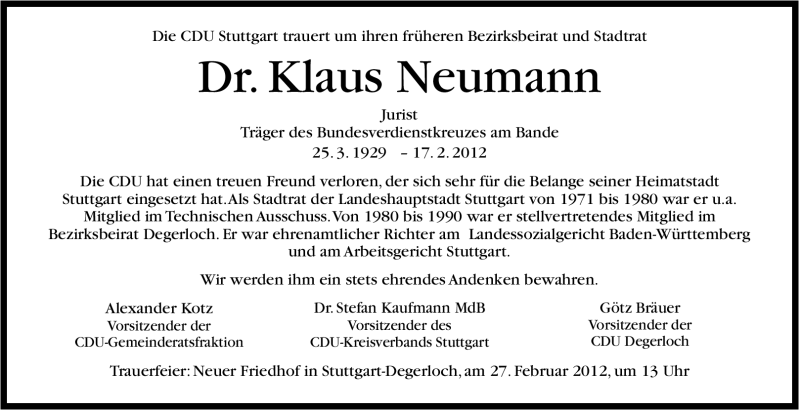 Hier finden Sie alle Traueranzeigen aus der Zeitung, die bisher für Klaus Neumann erschienen sind. Weitere Traueranzeigen, die in der Zeitung erscheinen, werden hier ebenfalls aufgelistet