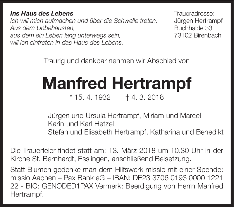 Hier finden Sie alle Traueranzeigen aus der Zeitung, die bisher für Manfred Hertrampf erschienen sind. Weitere Traueranzeigen, die in der Zeitung erscheinen, werden hier ebenfalls aufgelistet