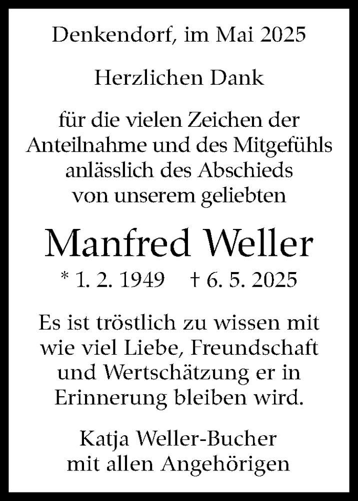 Hier finden Sie alle Traueranzeigen aus der Zeitung, die bisher für Manfred Weller erschienen sind. Weitere Traueranzeigen, die in der Zeitung erscheinen, werden hier ebenfalls aufgelistet