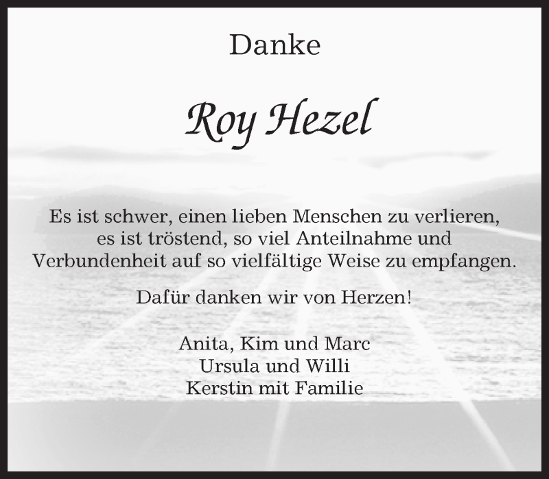 Hier finden Sie alle Traueranzeigen aus der Zeitung, die bisher für Roy Hezel erschienen sind. Weitere Traueranzeigen, die in der Zeitung erscheinen, werden hier ebenfalls aufgelistet