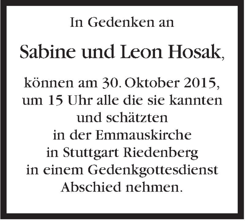 Hier finden Sie alle Traueranzeigen aus der Zeitung, die bisher für Sabine und Leon Hosak erschienen sind. Weitere Traueranzeigen, die in der Zeitung erscheinen, werden hier ebenfalls aufgelistet