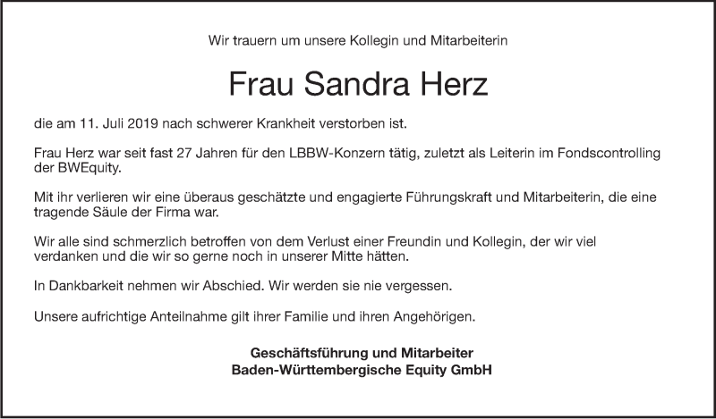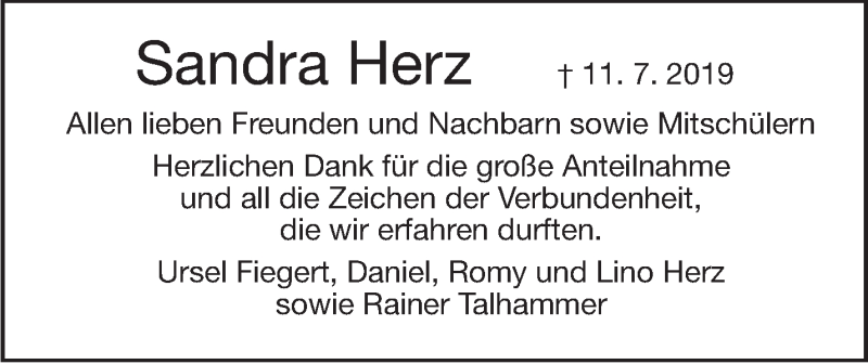 Hier finden Sie alle Traueranzeigen aus der Zeitung, die bisher für Sandra Herz erschienen sind. Weitere Traueranzeigen, die in der Zeitung erscheinen, werden hier ebenfalls aufgelistet