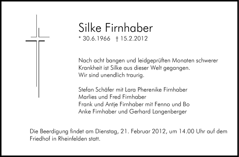Hier finden Sie alle Traueranzeigen aus der Zeitung, die bisher für Silke Firnhaber erschienen sind. Weitere Traueranzeigen, die in der Zeitung erscheinen, werden hier ebenfalls aufgelistet