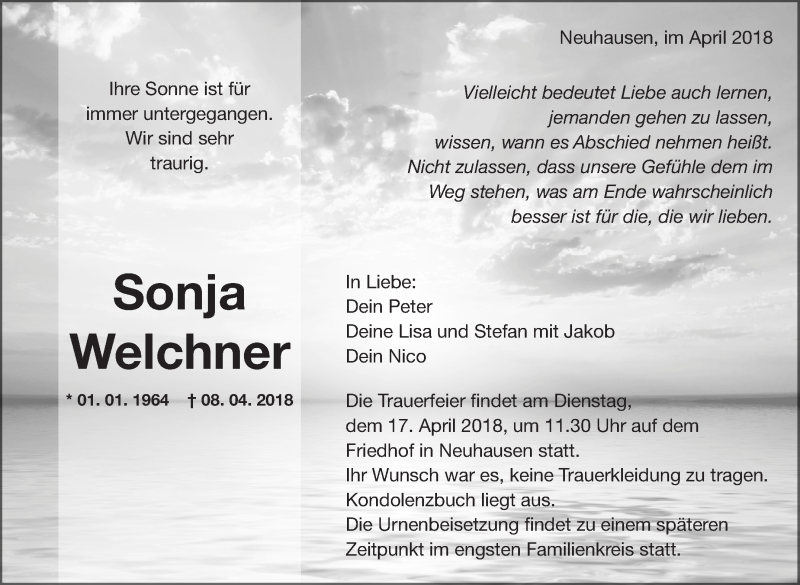 Hier finden Sie alle Traueranzeigen aus der Zeitung, die bisher für Sonja Welchner erschienen sind. Weitere Traueranzeigen, die in der Zeitung erscheinen, werden hier ebenfalls aufgelistet