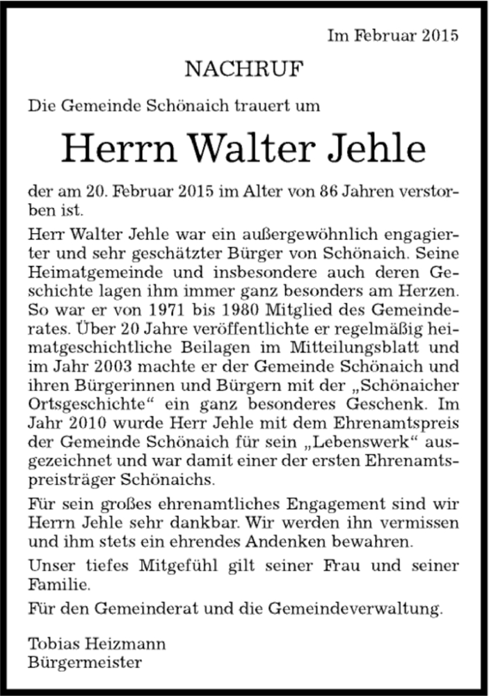 Hier finden Sie alle Traueranzeigen aus der Zeitung, die bisher für Walter Jahle erschienen sind. Weitere Traueranzeigen, die in der Zeitung erscheinen, werden hier ebenfalls aufgelistet