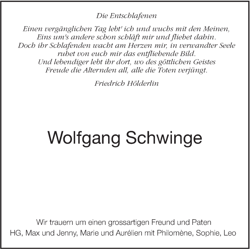 Hier finden Sie alle Traueranzeigen aus der Zeitung, die bisher für Wolfgang Schwinge erschienen sind. Weitere Traueranzeigen, die in der Zeitung erscheinen, werden hier ebenfalls aufgelistet